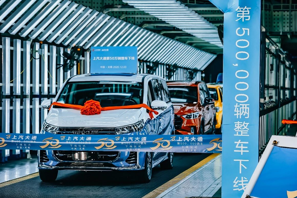 2020年12月3日,伴随着一辆上汽大通MAXUS EUNIQ 7驶出生产线,成立9年的上汽大通迎来了第50万辆整车下线。