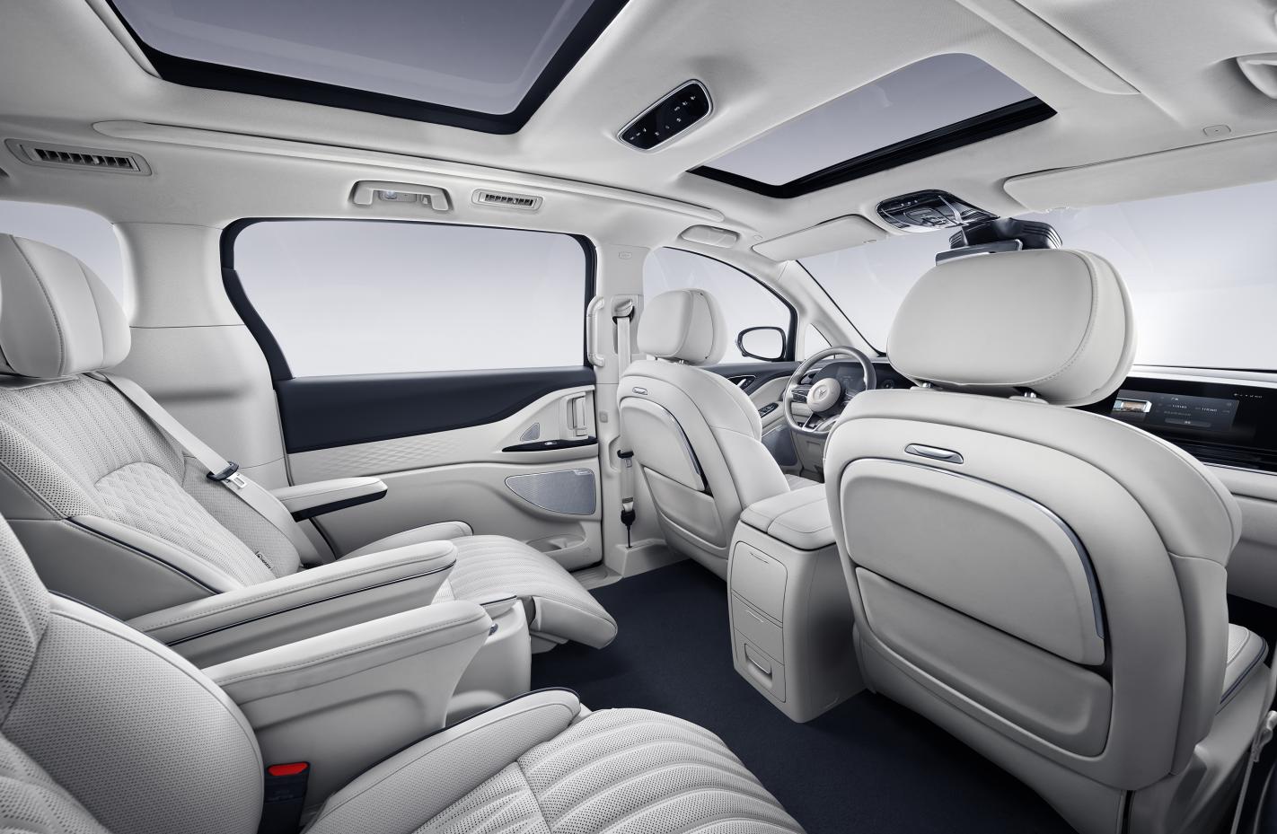岚图梦想家提供全车41处储物空间、搭载舒适按摩与电动腿托的二排座椅、采用欧盟婴儿级生态纺织品认证的环保材料。