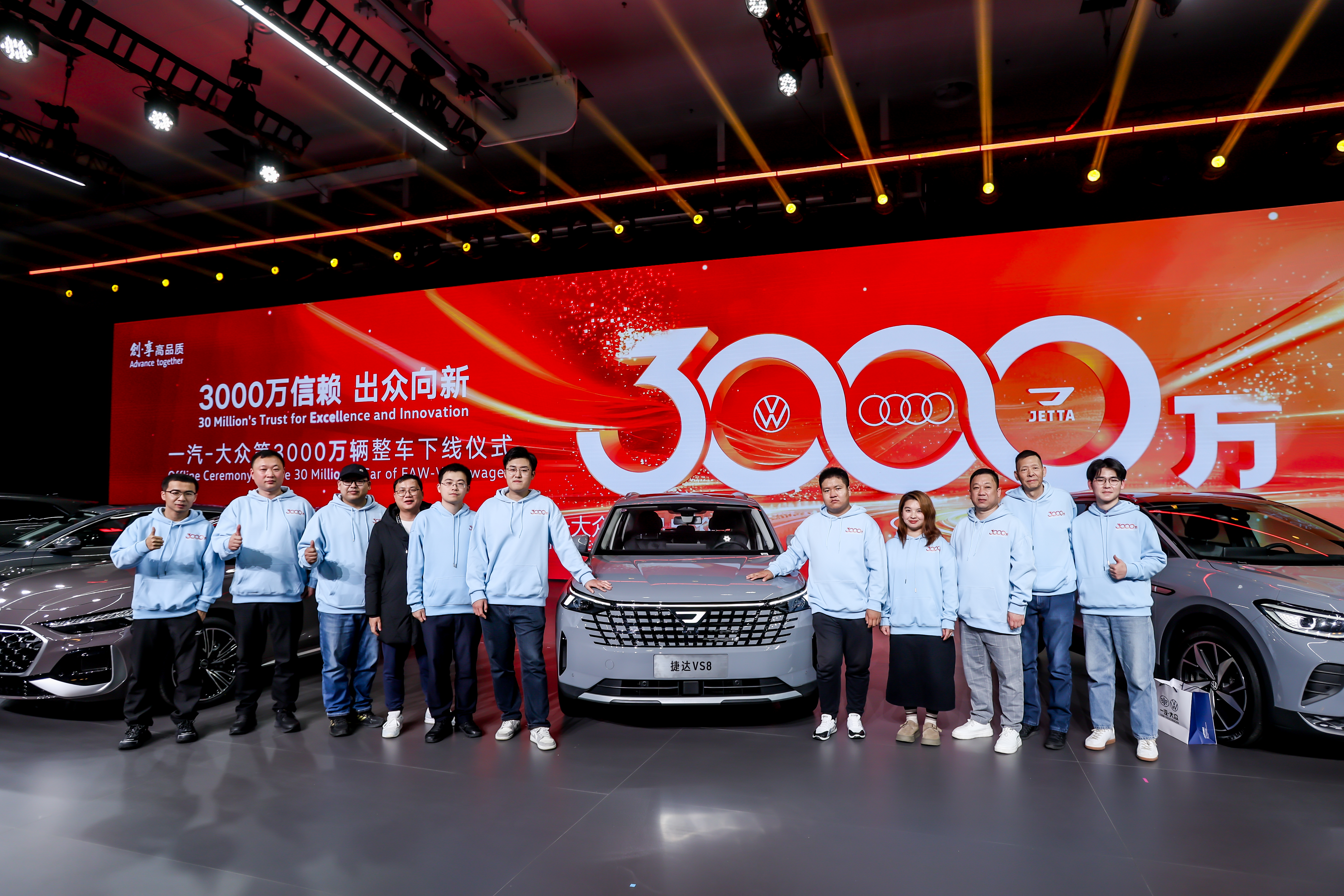 在此次以“3000万信赖 出众向新”为主题的盛典上,随着捷达VS8作为3000万里程碑车型之一,同大众、奥迪品牌旗下的5款不同车型来到台前。