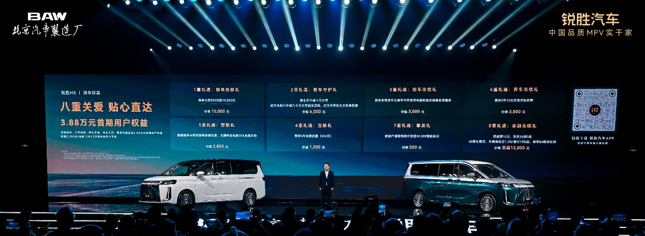 2025年12月5日,锐胜汽车首款全场景舒享大型MPV--锐胜M8正式上市,消费者在享受了用户抢鲜补贴和国补政策之后,其限时补贴售价直接低至12.98万元起,另外还有8大限时购车权益。