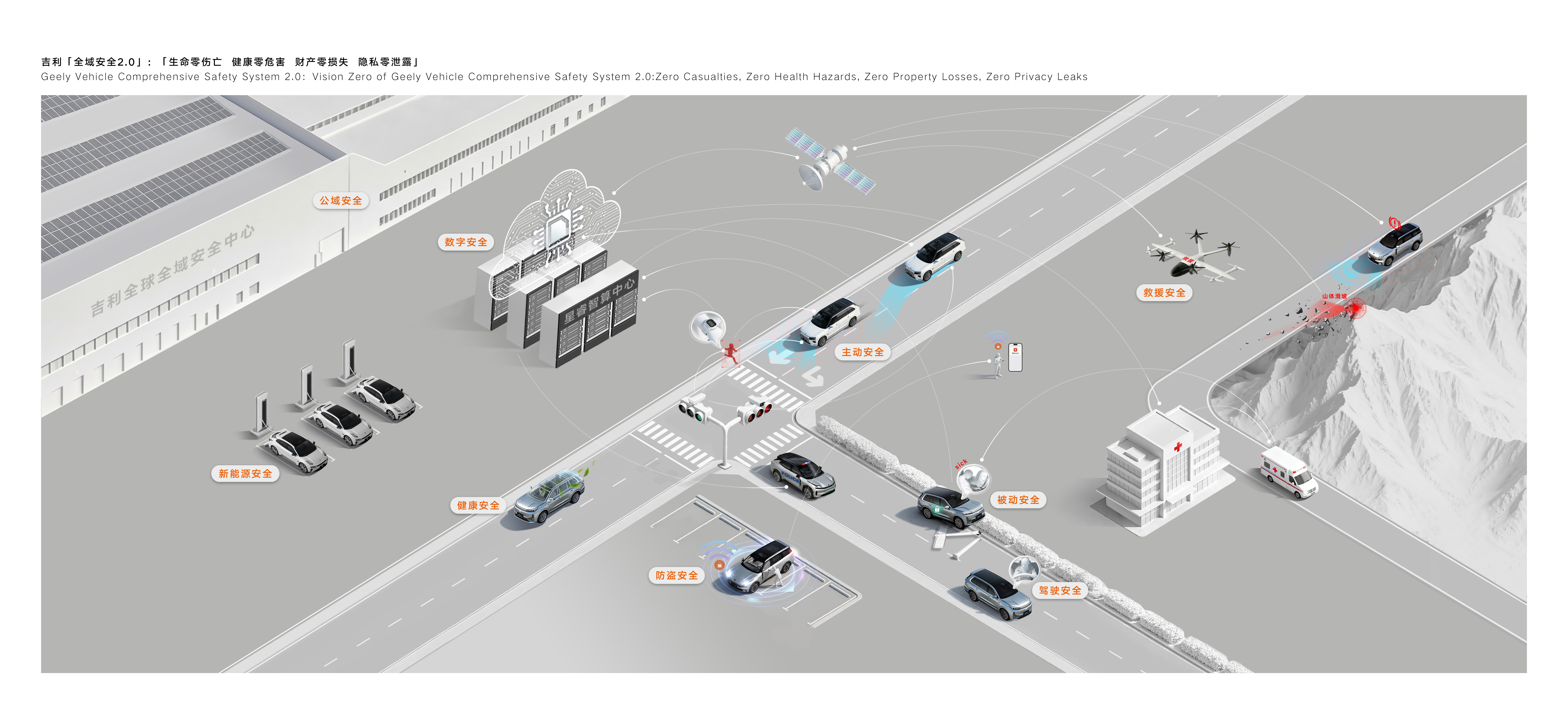 如今,吉利“全域安全2.0”技术体系将安全视野从单车延伸至公域交通生态,向着“生命零伤亡、健康零危害、财产零损失、隐私零泄露”的安全愿景稳步迈进。
