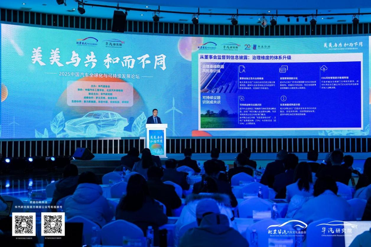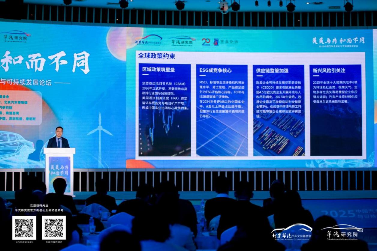 2025年12月19日,在由北京华汽汽车文化基金会和华汽研究院举办的“2025中国汽车全球化与可持续发展论坛”上,ESG咨询公司商道咨询管理合伙人、北京公司总经理彭纪来,代表商道咨询和华汽研究院现场发布《中国汽车可持续发展蓝皮书2025》(以下简称“蓝皮书”),并对报告的核心成果做分享和解读。
