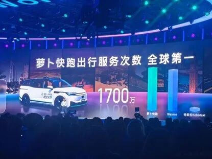 “萝卜快跑每周的全无人订单数已经超过了25万,全球的出行服务次数超过了1700万次,成为全球第一。”李彦宏宣布2025年以来,萝卜快跑已在北京、上海、武汉、深圳、香港、迪拜、阿布扎比等22座城市落地,全球自动驾驶总里程突破2.4亿公里,相当于绕地球6000圈。其中,全无人驾驶里程达1.4亿公里。