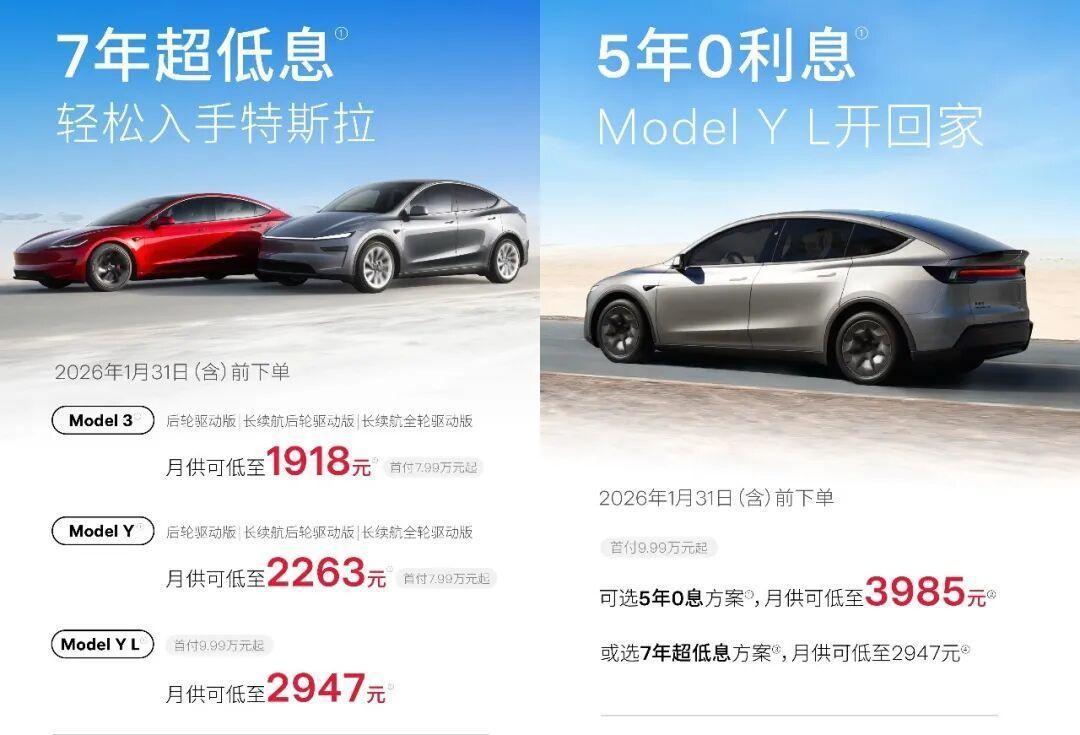 2026年1月,面对后补贴时代开局,特斯拉带头将“降价”置换为“金融杠杆”。这种方式巧妙地将促销成本从“营收端”转移至“财务端”,在维持指导价体面的同时,实质性地降低了支付门槛。