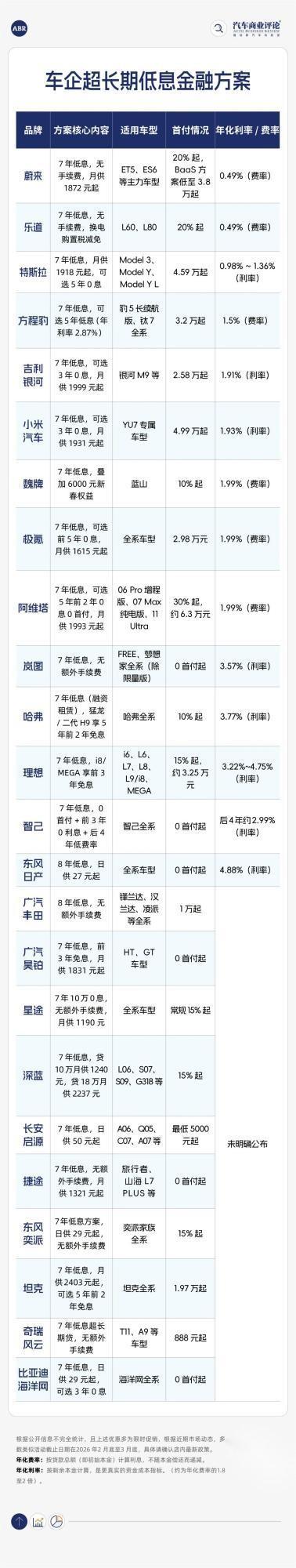 从反馈看,结果不一:就3月1日这个节点来说,小米汽车、比亚迪王朝网(新增)、坦克及蔚来旗下各品牌(新增firefly萤火虫)选择将7年低息政策延续至整个三月。
