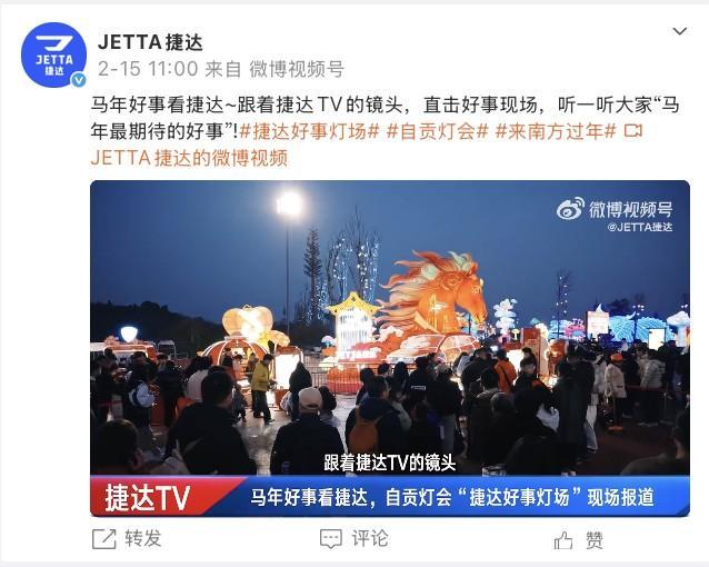 捷达品牌则瞄准自贡灯会这一民俗IP,策划“好事灯场”活动,推出品牌数字形象“捷达小马”,与传统彩灯形成趣味互动,在灯会现场设置车型展示区与试乘体验通道,让游客在逛灯会的过程中感受品牌理念。