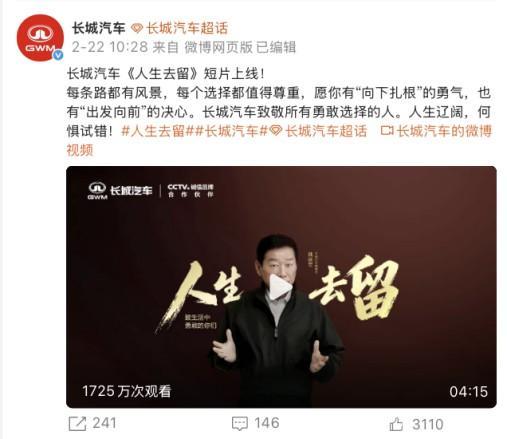 2月22日,长城汽车发布温情短片《人生去留》,全程无产品镜头,却精准刺中了当代年轻人最痛的抉择——“远方的梦想”还是“家乡的陪伴”。这种“此时无车胜有车”的留白,让品牌不仅走在路上,更走进了年轻人的心里。
