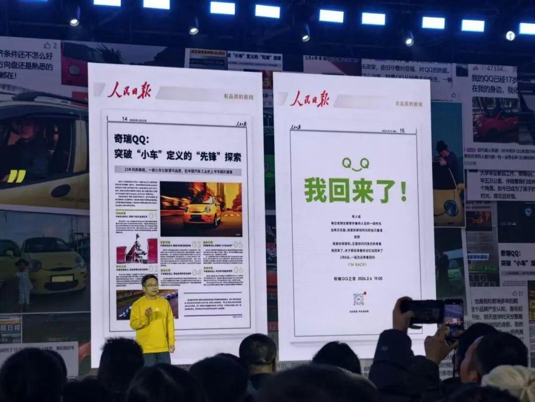 2月初,奇瑞QQ联合《人民日报》首发预告,以“国家队”背书将品牌回归升华为国民记忆的复苏。这种“正统感”直接击穿圈层,让QQ从廉价代步车华丽转身为承载亿万快乐的“国民图腾”。