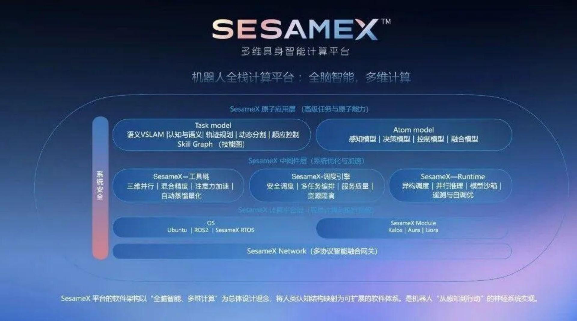 在具身智能领域,黑芝麻智能以车规技术迁移为核心,形成了系统化的落地布局。2025年11月,黑芝麻智能发布业界首个全栈自研、符合车规安全标准的SesameX多维具身智能计算平台,构建起“机器人全脑体系”。