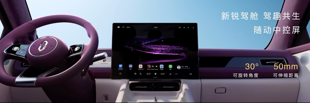 随动中控屏支持左右30°旋转、前后50mm伸缩,转出生活的AB面。26.1英寸互动W-HUD,具有4m超清视距,舞林萌主专属主题,每一次交互都充满趣味。