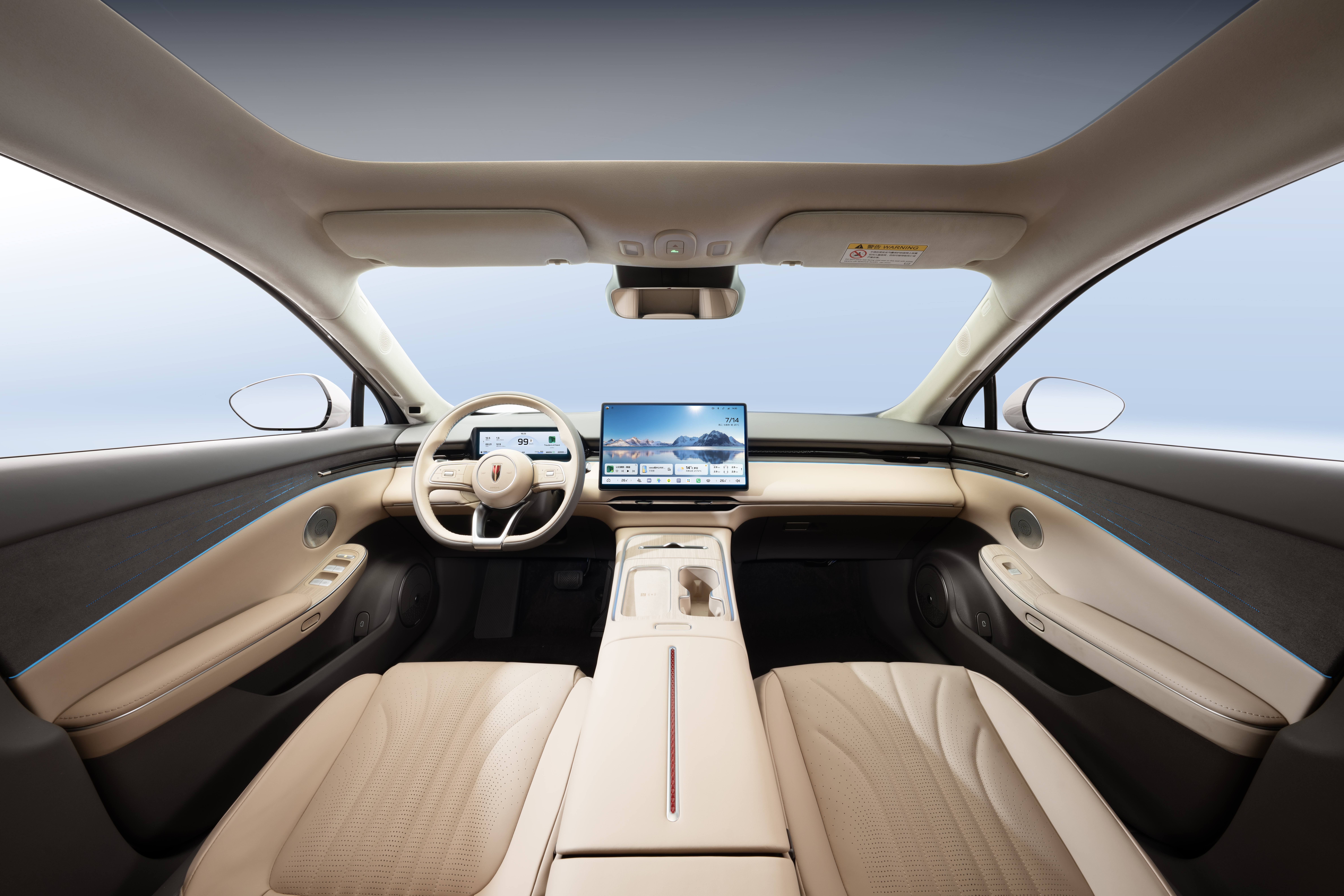 智能层面,新车搭载红旗司南组合驾驶辅助系统,可从容应对无标线路口左转掉头、复杂环岛进出等行车场景,更支持全场景智能泊车辅助、120米循迹倒车与长达2公里的记忆泊车等功能。