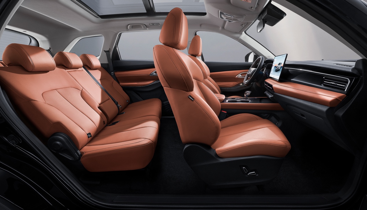 4742mm*1870mm*1720mm的超大车身尺寸,以及2786mm的超长轴距,带来超大车内空间,让座舱如同“移动家庭城堡”,加上7座空间布局,提供了超乎期待的舒适出行体验,轻松满足三代同堂家庭出行和多朋友出游的空间需求。