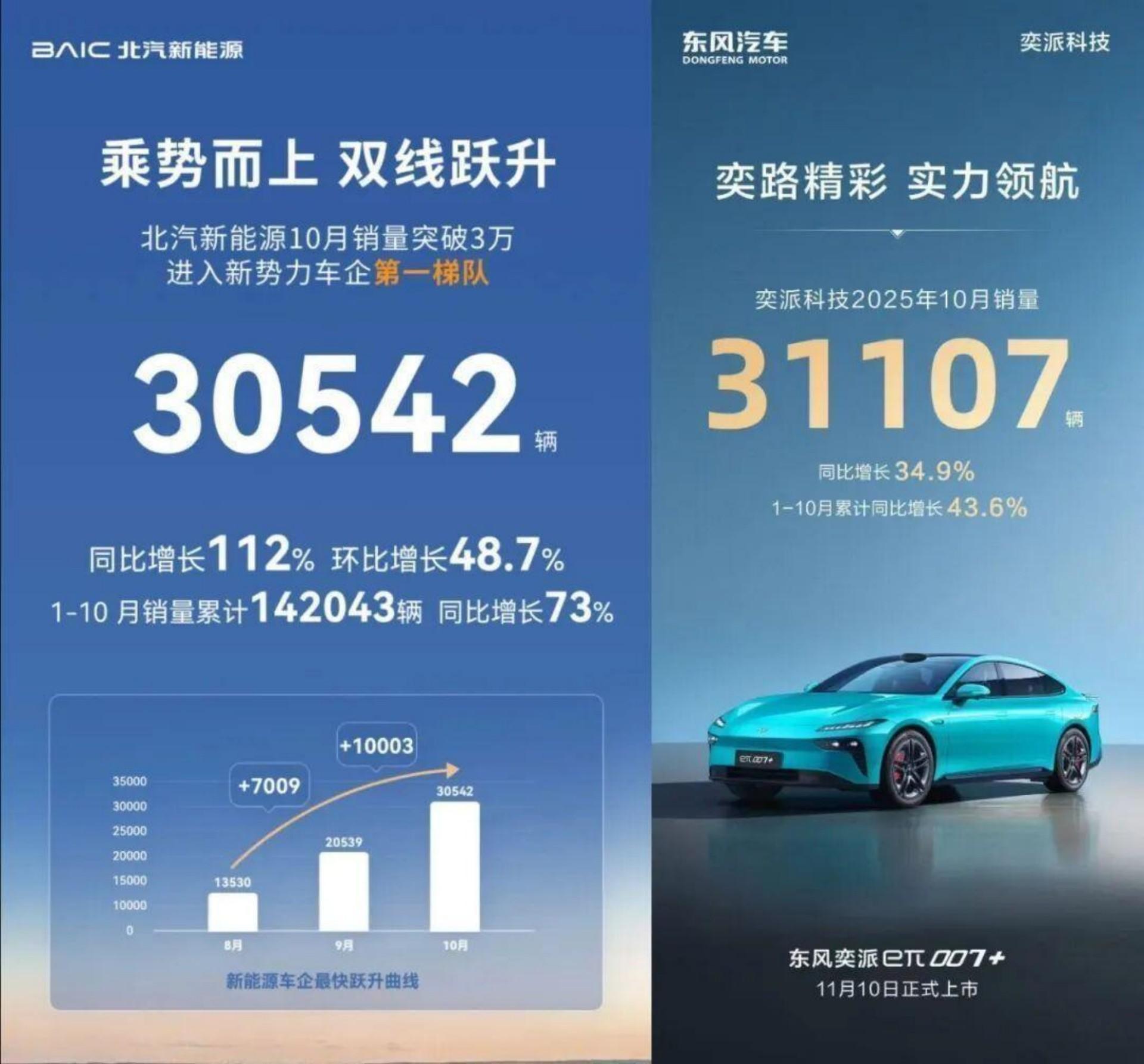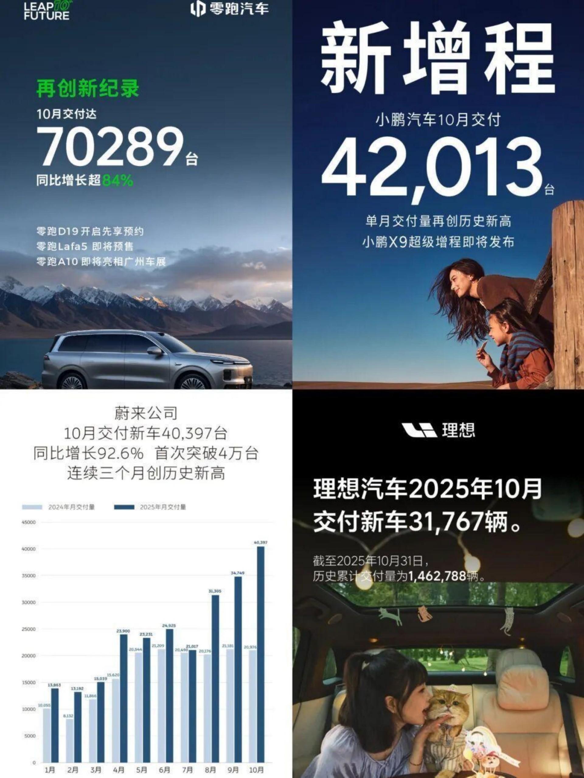 零跑、小鹏、蔚来、北汽新能源、一汽奔腾、领克、奕派科技,都在这个十月收获了单月销量历史新纪录。