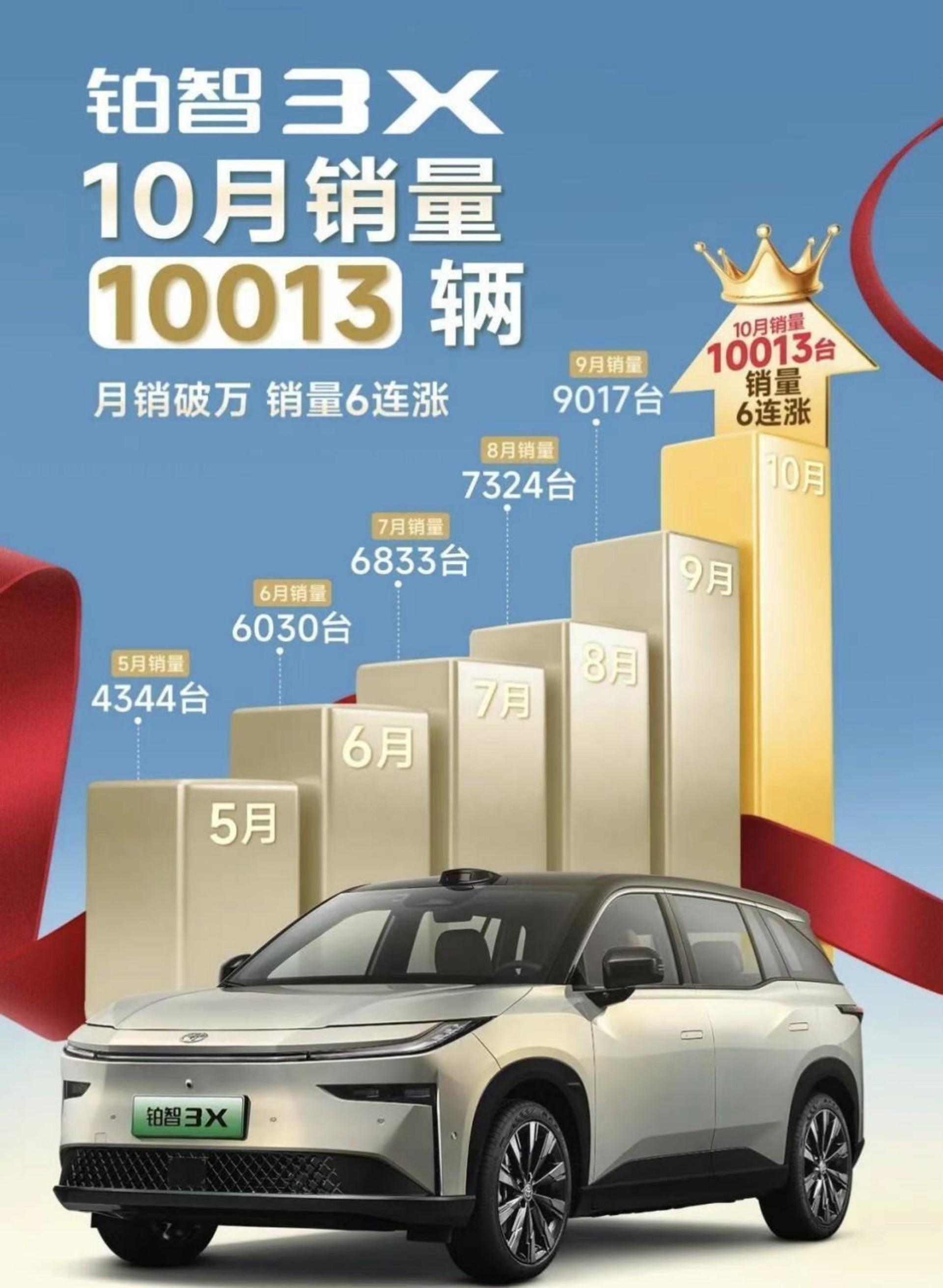 2025年10月份,铂智3X销量达到10013辆,不仅月销破万,而且自2025年3月6日上市至10月下旬,有4个月获得合资新能源销冠。