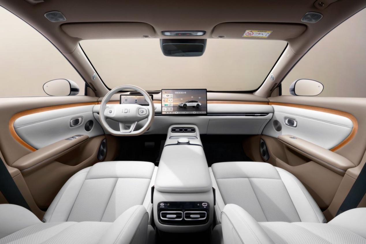 造型方面,该车型延续“扶光美学”设计理念,车身线条流畅优雅,型面光影变化富有节奏。配备2258毫米贯穿式前大灯、无边框车门及低风阻轮毂,整体造型协调统一。