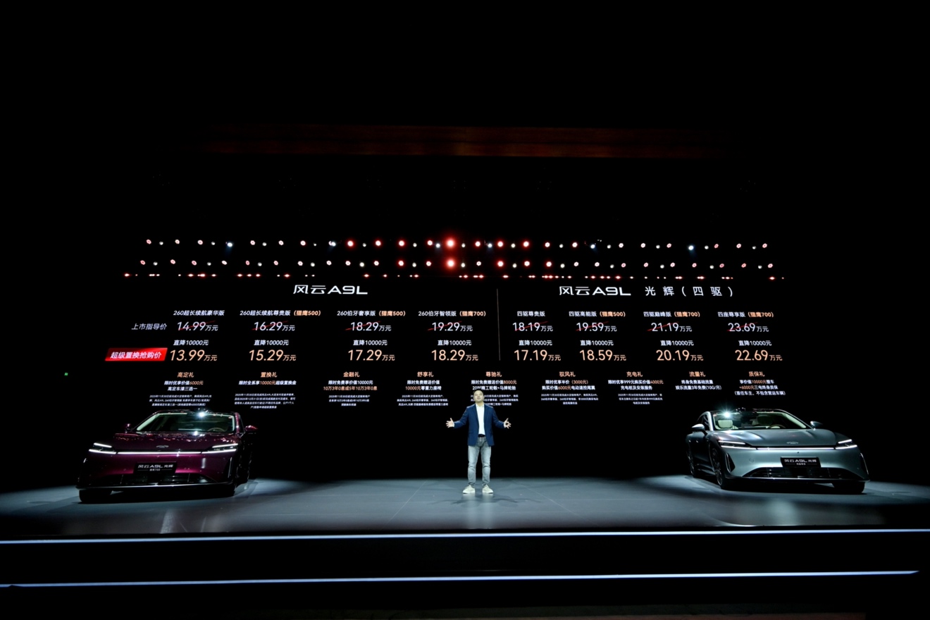 11月15日,"进化"风云A9L光辉(四驱)全球上市发布会在重庆广阳岛国际会议中心隆重举行,本次上市共推出四款版型,正式售价为17.19万元起,共推出四个版本车型,其中四驱尊贵版售价17.19万、四驱高能版(猎鹰500)售价18.59万、四驱巅峰版(猎鹰700)售价20.19万、 四座尊享版(猎鹰700)售价22.69万。
