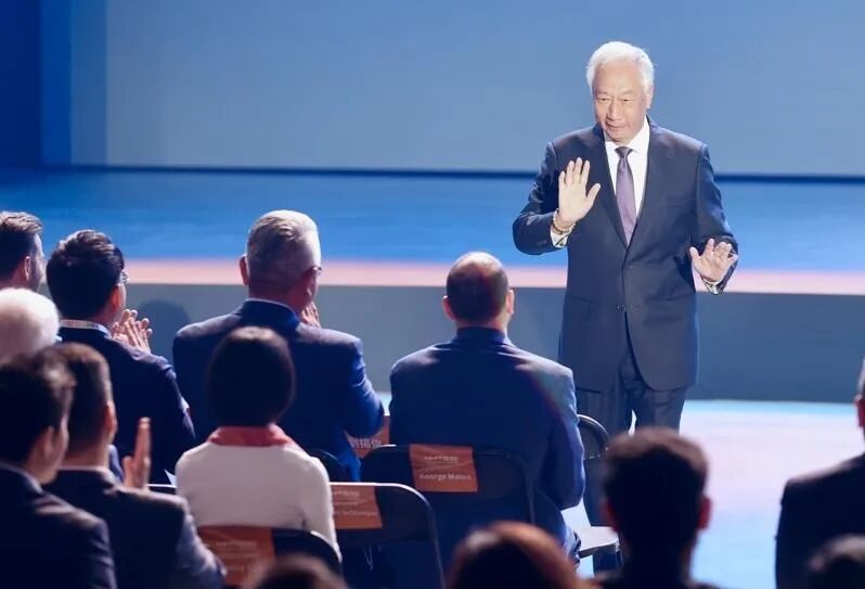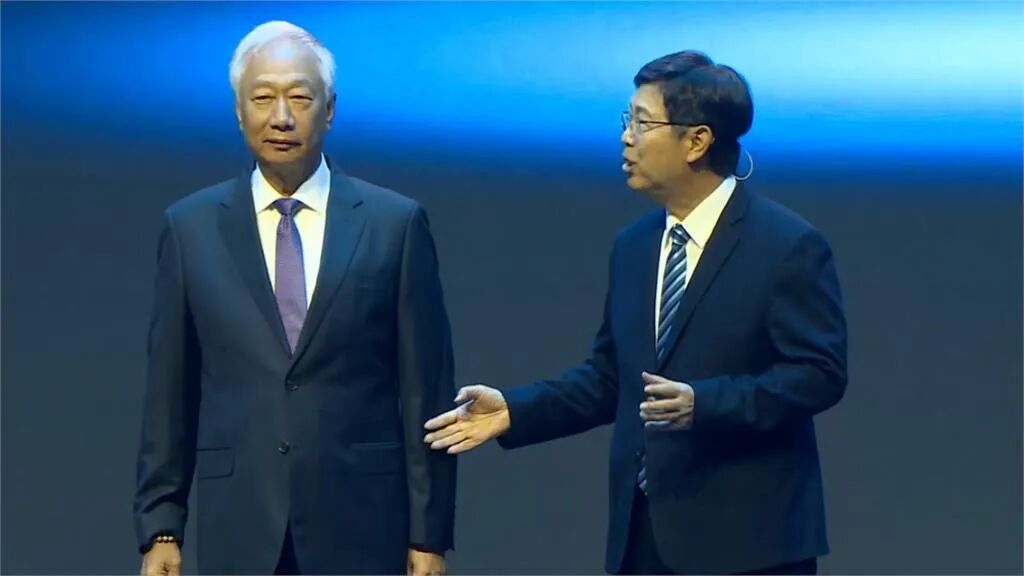 黄仁勋的儿子黄胜斌也在现场。鸿海创始人郭台铭满头白发,也出席了该活动。