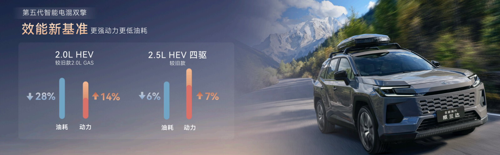 换代威兰达的一大亮点是提供“下一代油车”的机械素质,配合丰田独步全球的混动技术,把燃油车的驾驶乐趣和应用场景无限拓展。换代威兰达全面升级丰田最新的第五代智能电混双擎系统,无需充电换电,即可拥有超越插混的油耗和动力表现。